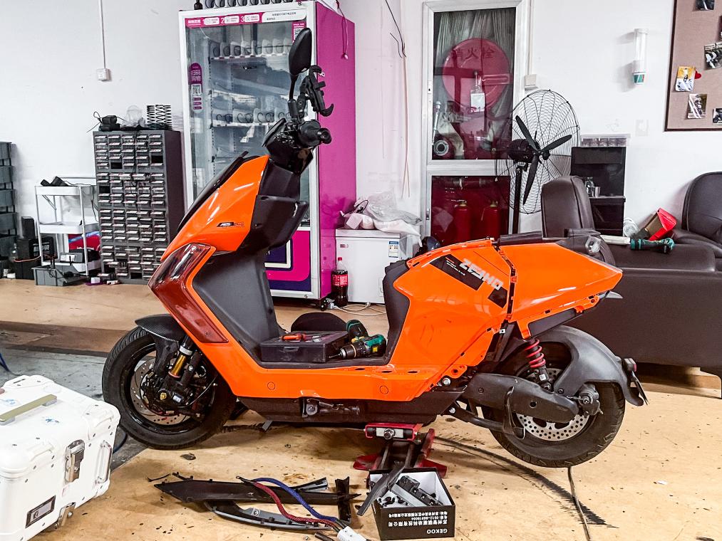 11月26日,在上海市郊一家电瓶车改装店铺,工作人员对电瓶车进行改装。改装后的车辆时速可轻松破百。